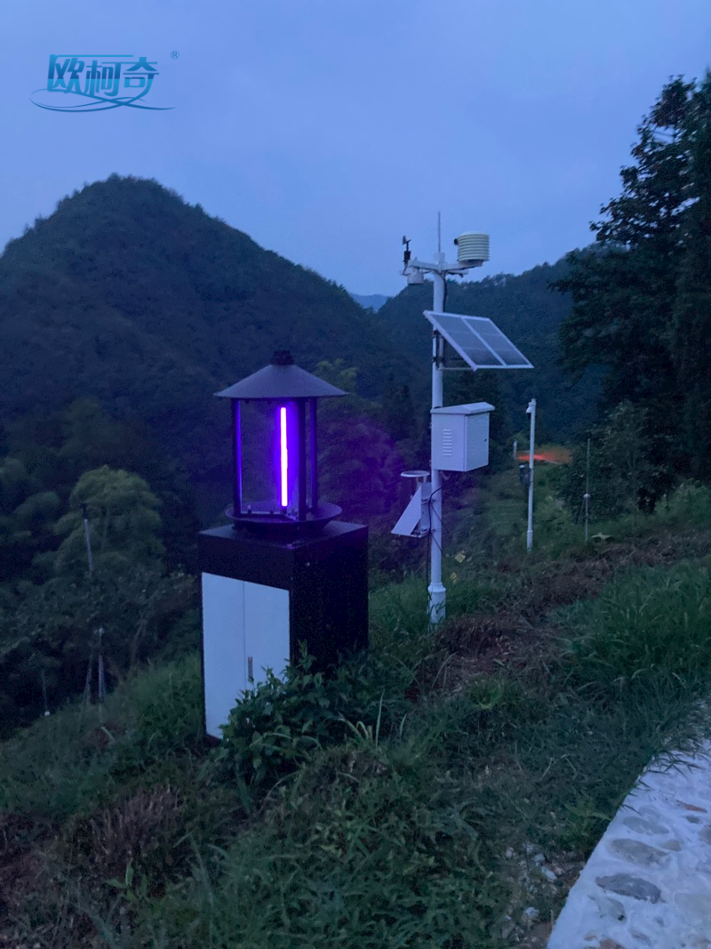 OK-CQ12智能虫情测报灯(左)、OK-TQ10型气象环境监测站(右)